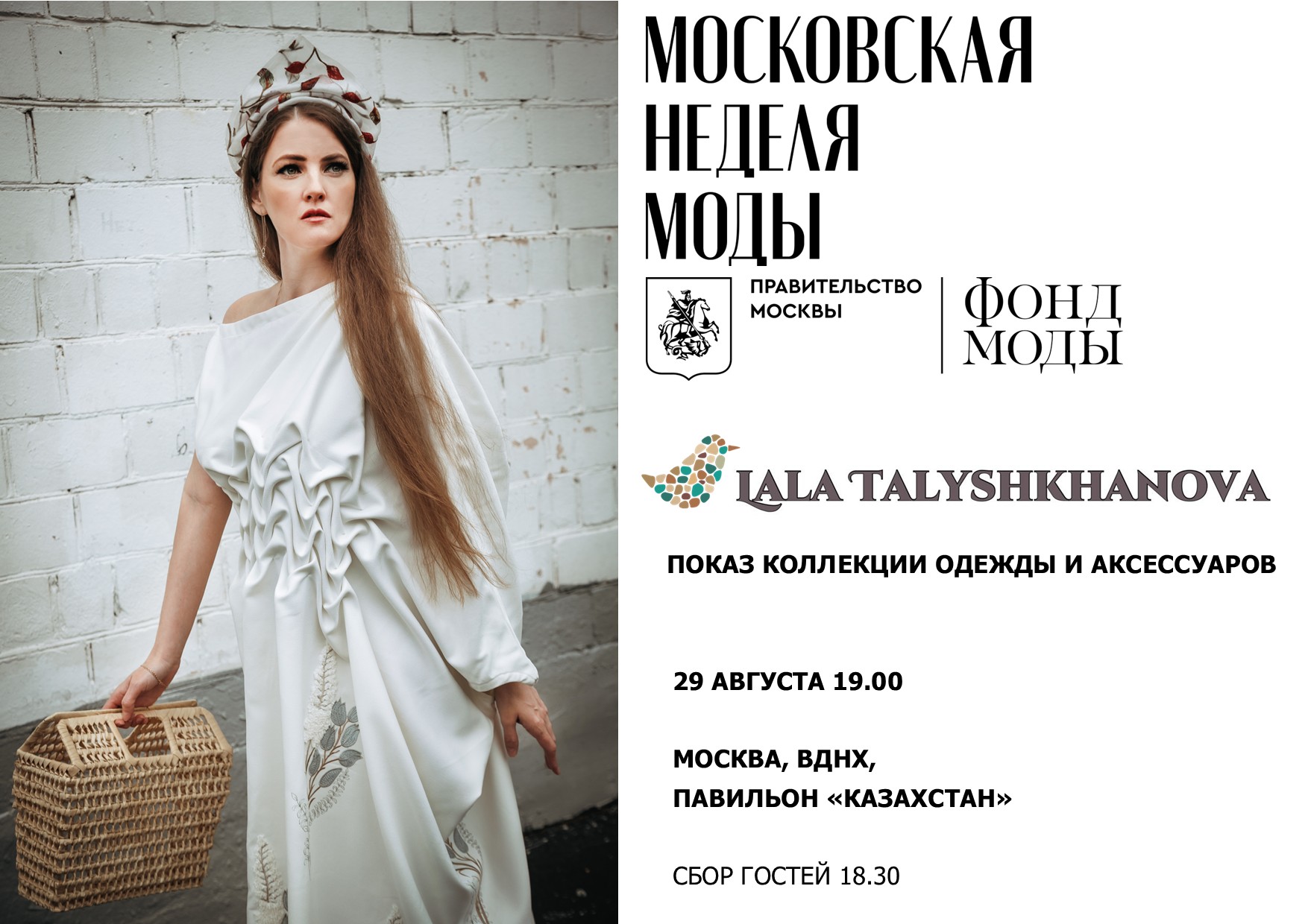 В Москве на ВДНХ в павильоне «Казахстан», 29 августа 2025г. в 19.00 в рамках Московской Недели моды— Бренд Lala Talyshkhanova анонсирует выпуск новой капсульной коллекции одежды и аксессуаров «А-ля Рус», вдохновленной традиционными русскими мотивами, переосмысленными в современном ключе. Коллекция ориентирована на сегмент middle up и сочетает в себе высокое качество материалов, актуальные силуэты и этнические элементы. В показе принимают участие модели age+, плюс-сайз и нестандартные модели.